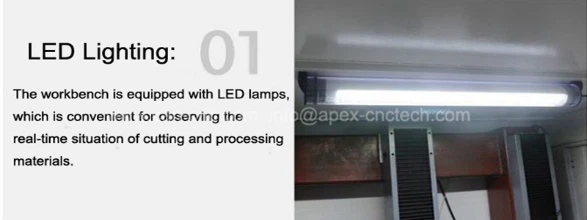 Arbeidsbenken er utstyrt med LED-lamper, som er praktisk for å observere sanntidssituasjonen for skjæring og bearbeiding av materialer.