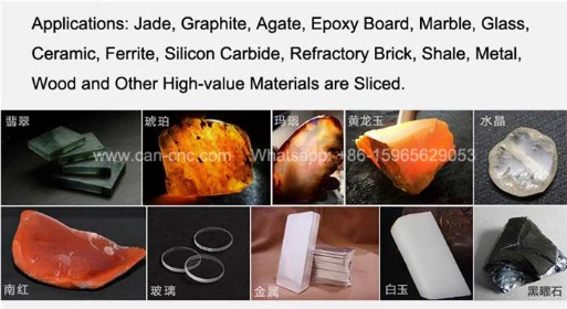 Jade, grafitt, agat, epoksyplater, marmor, glass, keramikk, ferritt, silisiumkarbid, ildfast murstein, skiferstein, tre og andre høyverdige materialer for skjærebehandling.