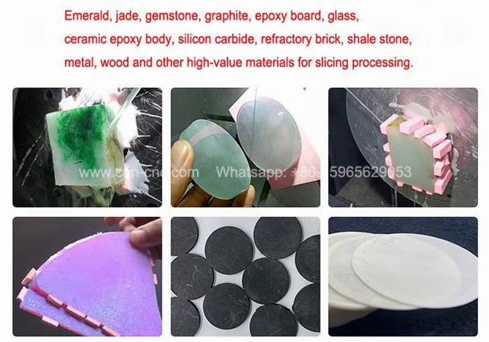 Smaragd, jade, edelsten, grafitt, epoksyplater, glass, keramisk epoksykropp, silisiumkarbid, ildfast murstein, skiferstein, metall, tre og andre høyverdige materialer for skjærebehandling.