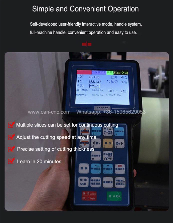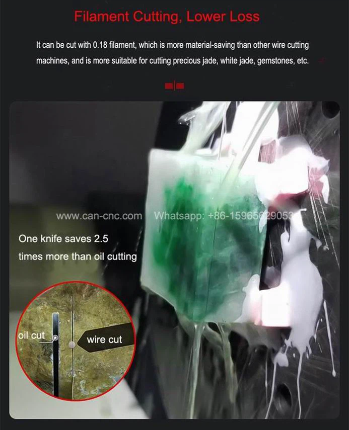 Den kan kuttes med 0.18 filament, som er mer materialbesparende enn andre trådskjæremaskiner, og er mer egnet til å kutte edel jade, hvit jade, edelstener osv.